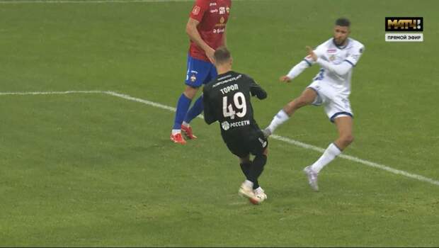 На 61-й минуте нападающий гостей Эль-Мехди Маухуб пошел на Владислава Торопа в штрафной площади соперника и ударил шипами в бедро вратаря хозяев.