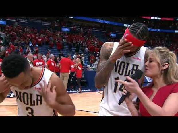 Защитник «Пеликанс» Си Джей Макколлум исполнил танец во время интервью после победы над «Санз» в четвертом матче серии первого раунда плей-офф.